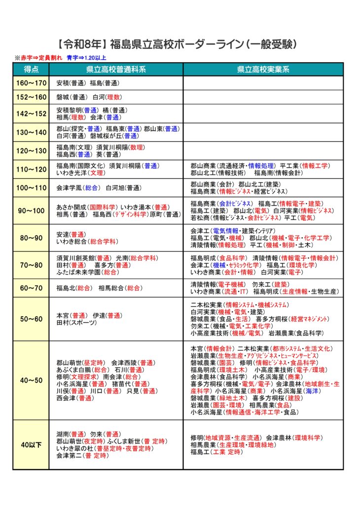 あ、福島県高校入試の合否判定はテスト結果だけで決まるものではありません。「進学校は入試得点だけで決まる」というのは都市伝説です。