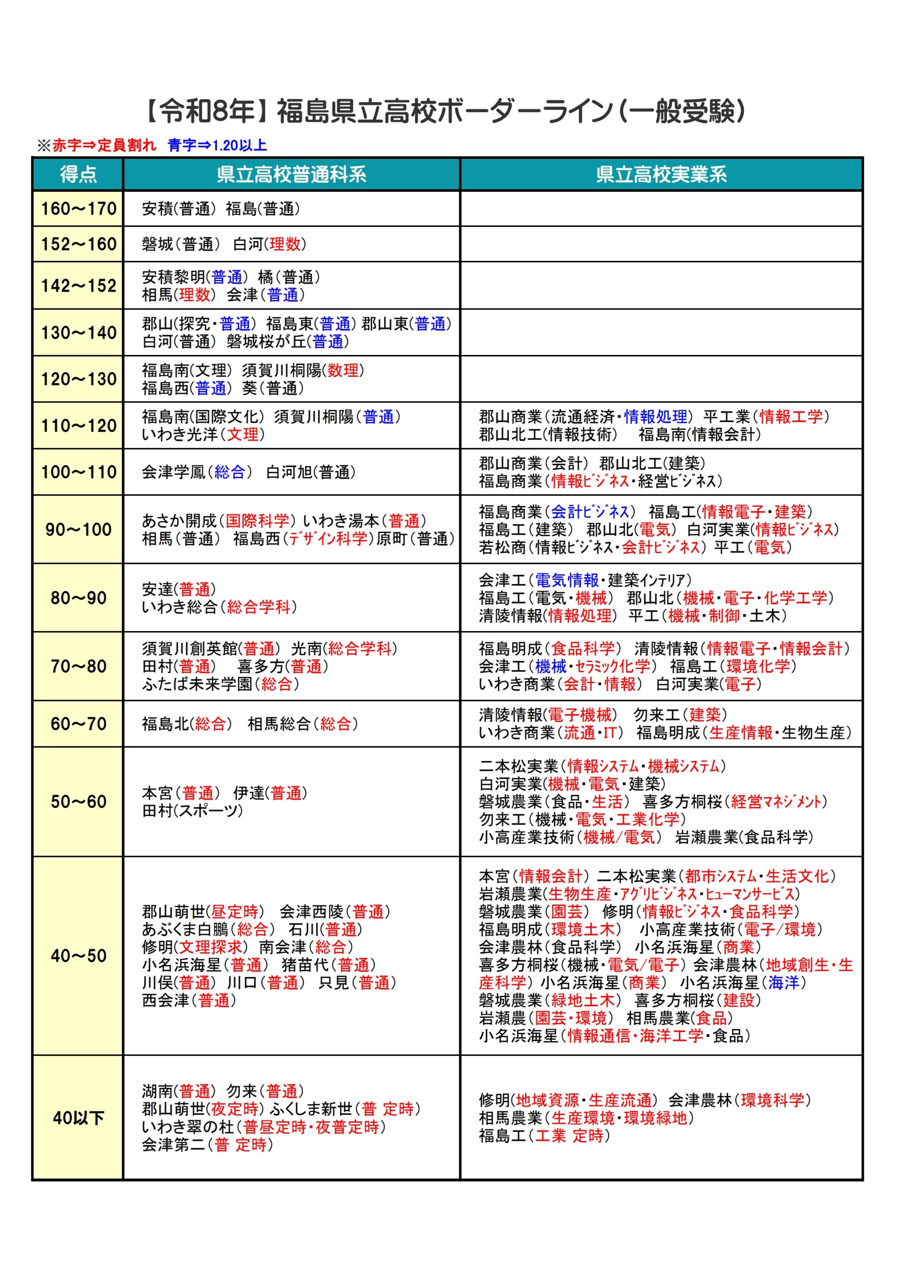 【極秘資料】これが福島県内進学校過去7年の合格ラインだ!!