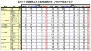 2026年度の福島県立高校前期選抜の最終倍率を学区別一覧表を作成しましたのでご覧下さい。